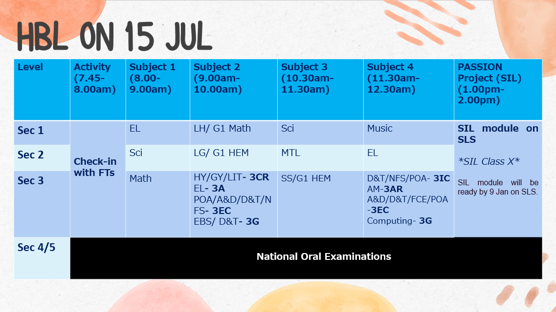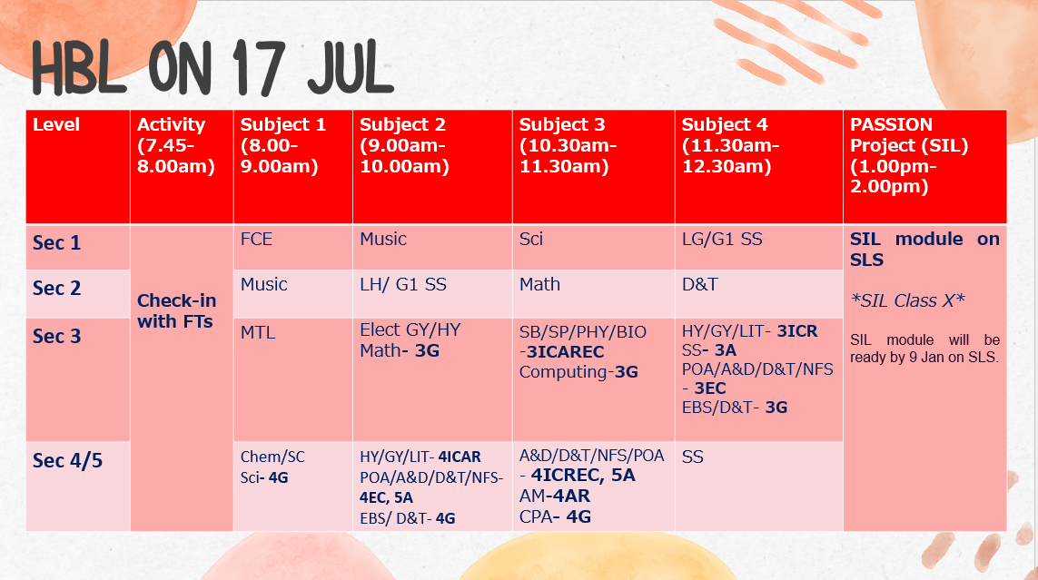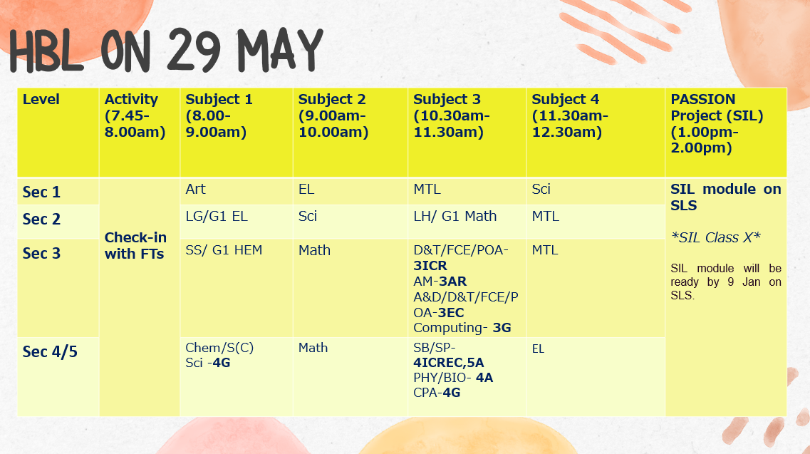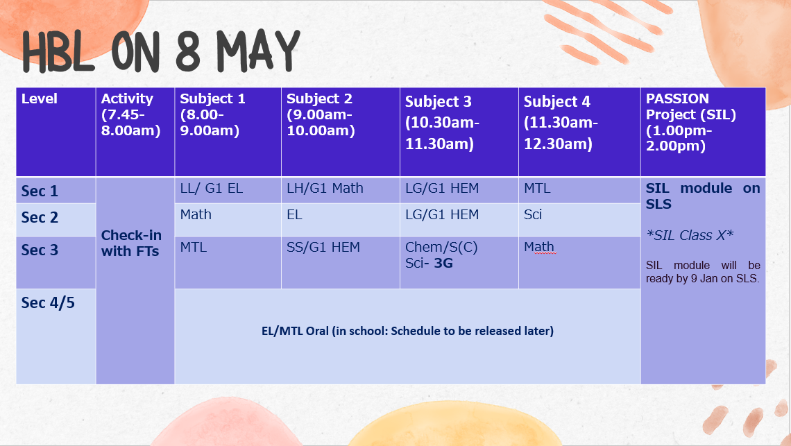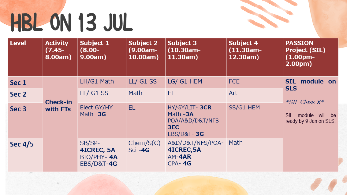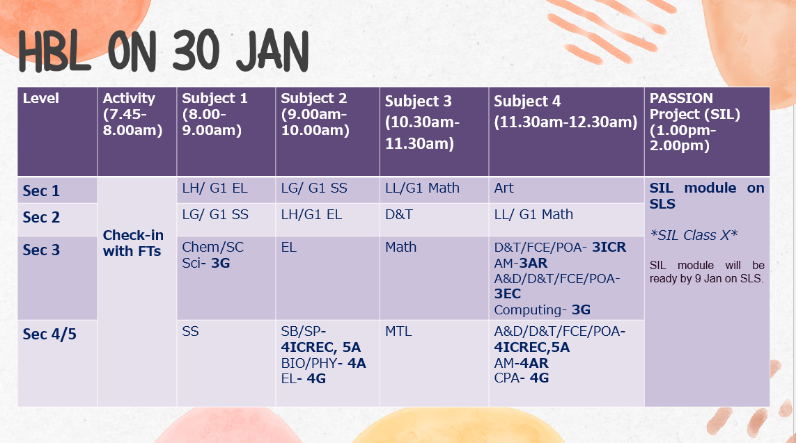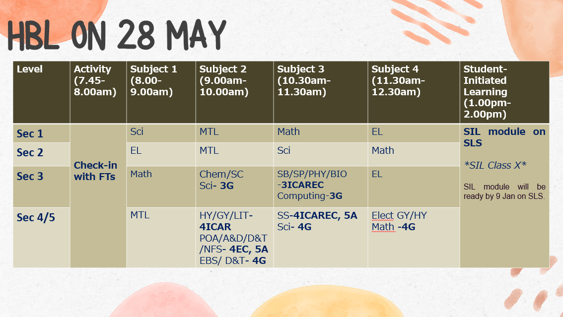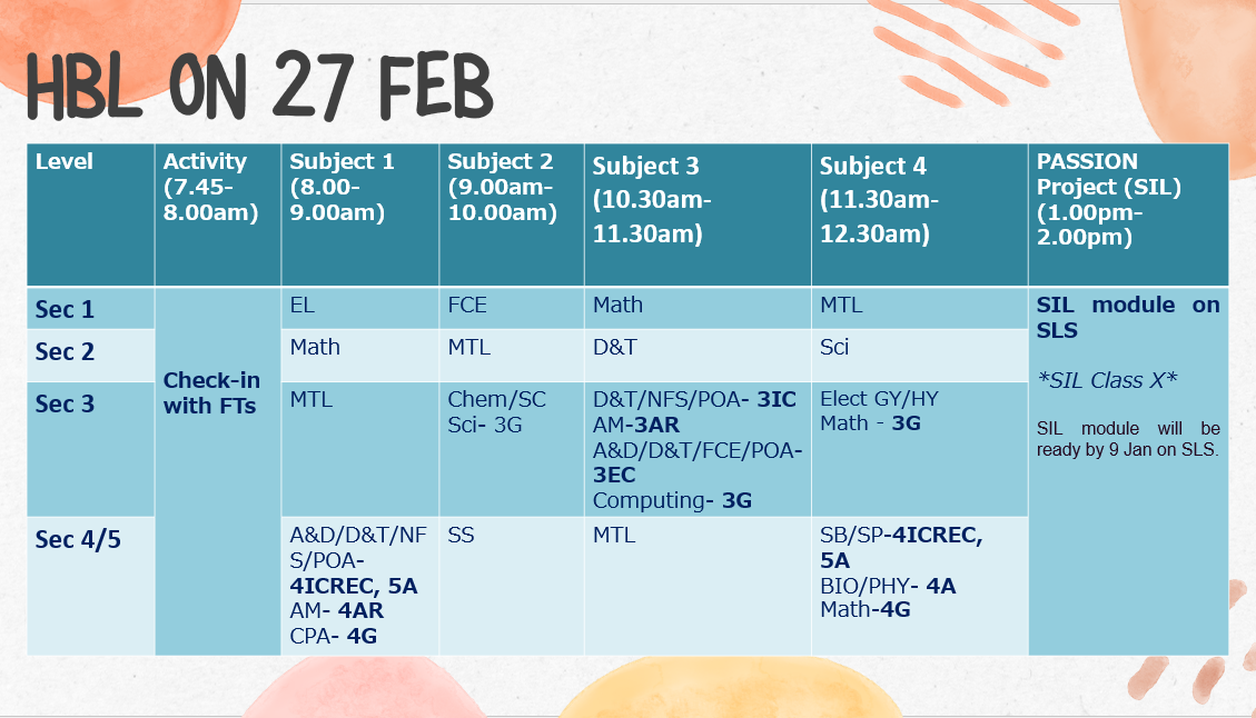 HBL@BDS will be scheduled on every EVEN Friday. Please click on the following dates for the HBL@BDS timetable. All students will need to check-in with their respective Form Teachers at 7.45am on HBL@BDS days.